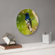 A Photographic Moments Design featuring an attractive and animated photographic image of the "White-collared Jacobin" hummingbird in this one-of-a-kind "Portrait of Contemplation" Round Clock. This colorful and eye-catching design comes complete with customizable text lettering and contrasting white clock face numbers making this the perfect complement to the decor, at home or the office or cabin at the lake. Makes an ideal gift idea for any occasion.