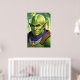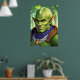Portrait of orc elf hybrid man with green skin, blue eye and a yellow eye, short green hair, wearing cool and unique clothing (Half orc , Half elf). This is a AI generated art.