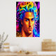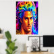 I asked the AI to make a portrait of the Greek God Apollo, here with blue eyes and long colourful hair. This is a AI generated art.