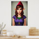 Portrait of gnome elf hybrid women with light skin, blue eyes, long brown hair, wearing cool and unique clothing (Half gnome , Half elf). This is a AI generated art.