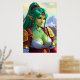 Portrait of orc elf hybrid women with green skin, blue eyes, long green hair, wearing cool and unique clothing (Half orc , Half elf). This is a AI generated art.