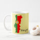 Show everyone your love for the country of Portugal with this unique coffee mug featuring a map of Portugal filled in with the flag colours of Portugal. The font and colour of the text and the background colour of the product can be changed to fit your preference.