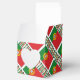 Favour box, with a heart shaped in front, shows the Portuguese Flag with the word, PORTUGAL, below, in the colours of the flag. Design is tiled for added aesthetic effect. A white space of squiggly squares lends itself to personalisation by adding your name. Makes a lovely favour box for a customised family reunion, bon voyage, welcome home, or other party occasions.