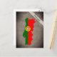 Postcard with an outline of Portugal, coloured in the design of the national flag.