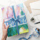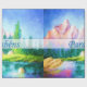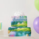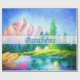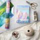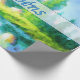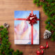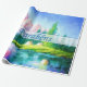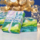 This photo gloss wrapping paper has a painting with a big outdoors landscape, a pink rocky mountain, a pine forest river valley, and a semitransparent stripe with the expression: “Parabéns.” This gift paper is an elegant item to wrap your gifts, as well as a nice present in itself to someone special.
