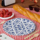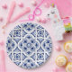 This product has an intricate design with a dark blue background and white ornamental patterns. The design is reminiscent of traditional ceramic or porcelain styles, which may interest those who appreciate classic or vintage aesthetics.