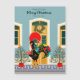 This festive and elegant Christmas illustration showcases a yellow façade of an old traditional Portuguese house adorned with wooden doors and windows and wrought iron balconies. Portuguese pavement graces the sidewalk, while two Christmas trees adorned with colourful Christmas balls stand by the entrance. A Christmas wreath graces the door. The scene captures the essence of the Portuguese Christmas in the streets—a harmonious blend of traditional architecture and joyful holiday spirit. The Portuguese Rooster stands in front of the house holding a carefully picked Christmas present that he's about to deliver. The act captures the essence of the season, the joy of giving. This whimsical illustration embraces the true spirit of the season in Portugal. This product is ideal to offer to a Portuguese friend, to a relative, to someone of Portuguese descent, or to someone who appreciates Portuguese traditions. Remove or change the words and their font with Zazzle Design Tool.