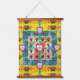 The polyester fabric displayed many wrinkles and several sharp creases throughout. At the bottom of the tapestry, I noticed a bulge in the fabric because it was not pulled tight enough before being connected to the wooden boards. It took me over an hour to spay water on the tapestry before putting it on an ironing board where I used a warm iron over a polyester cloth to remove the wrinkles and creases in the material. I was able to get out the wrinkles and creases that made that tapestry look as beautiful as its picture.