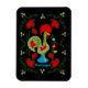 It was from 1950 onwards that the Barcelos rooster that the world knows today became popular. It looks modern and elegant, with red hearts, a serrated tail, and a large crest. The painted red hearts are inspired by embroidery and jewellery from Minho. The rooster is associated with a legend. The miracle of saving a falsely accused pilgrim is attributed to Saint James ( São Tiago, in Portuguese) and is territorially linked to the road to Santiago of Compostela. In the Archaeological Museum of Barcelos there is a 14th-century granite cross alluding to this legend, representing the aforementioned “miracle”. Art, history, legend, and religion come together in the figure of the Portuguese Rooster, contributing to making it fascinating and an object of worship among nationals and foreigners. This green rooster with floral and colourful decorations will appeal to Portuguese and Portuguese descendants, tourists and travelers, and all those who appreciate popular culture. It makes a good birthday present for a special friend. The Portuguese Rooster of Luck fills our home with joy with its simplicity and vibrant colours.