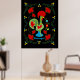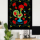 It was from 1950 onwards that the Barcelos rooster that the world knows today became popular. It looks modern and elegant, with red hearts, a serrated tail, and a large crest. The painted red hearts are inspired by embroidery and jewellery from Minho. The rooster is associated with a legend. The miracle of saving a falsely accused pilgrim is attributed to Saint James ( São Tiago, in Portuguese) and is territorially linked to the road to Santiago of Compostela. In the Archaeological Museum of Barcelos there is a 14th-century granite cross alluding to this legend, representing the aforementioned “miracle”. Art, history, legend, and religion come together in the figure of the Portuguese Rooster, contributing to making it fascinating and an object of worship among nationals and foreigners. This green rooster with floral and colourful decorations will appeal to Portuguese and Portuguese descendants, tourists and travelers, and all those who appreciate popular culture. It makes a good birthday present for a special friend. The Portuguese Rooster of Luck fills our home with joy with its simplicity and vibrant colours.