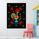 The rooster went from unknown to national star. In September 1935, Portugal was represented in Geneva with an exhibition of Popular Art, where the Galo de Barcelos had its international premiere. From that moment on, the rooster has always received praise and awards in various places around the world. The first roosters were small objects but today there are roosters of all sizes. The black colour appeared only in the 1950s due to the scarcity of coloured ink. The most colourful roosters appeared only in the '30s, already in the 20th century. The first roosters were whistles or toothpick holders. Today we find decorative roosters in ceramics, some are even pieces of modern art or monuments. There is no tourist who visits Portugal who does not take home a rooster in their suitcase! Roosters are present in all kinds of souvenirs, keyrings, magnets, bags, towels, and t-shirts.