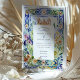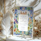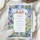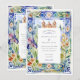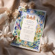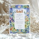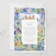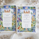 Lush watercolor florals, including elegant purple irises and colourful wildflowers, bloom along the sides, adding a layer of botanical beauty to the ornate tile work. Your wedding details are presented in a clean, central panel with classic and sophisticated typography, creating a perfect harmony between the intricate artwork and the essential information. This invitation is perfect for a destination wedding in Portugal or for any couple wanting to share their love for vibrant, artistic, and floral design.
