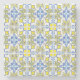 This design features a colorful pattern of traditional Portuguese azulejo tiles in yellow, white and blue.