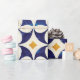 Hand painted traditional tiles from Portugal design. Pattern of perfection. Azulejo blue, white and yellow geometric pattern tile artwork. The perfect decorative pattern design.