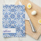 Portuguese tiles, Mediterranean kitchen towel. Rustic, boho, vintage tiles, blue, botanical artwork. Please personalise it with your name.