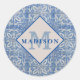 Portuguese Tiles Vintage Blue White Monogram Classic Round Sticker
