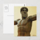 Postcard with an image of an extreme realism watercolor painting of a bronze statue of Poseidon, one of the twelve Olympian deities of the pantheon in Greek mythology, located in the National Archaeological Museum in Athens, Greece. Created around the 5th century BC.