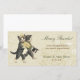 Sweet vintage bride cat holds a white rose wedding bouquet and Groom cat struts beside her with his black top hat. Ivory floral background. Card is accented with a satin ribbon. Customise these wedding thank you photo cards to show your appreciation for their gift.