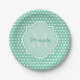 Posh Polka Dots Mint Green Monogram and Name Paper Plate