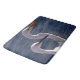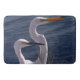 This Bath Mat is an original photograph by ZoeSPEAK of two white, long necked shore birds posing by the deep blue waters of the ocean. The bird with the long, pointed black beak is a snowy egret. The bird with the long, pointed yellow orange beak is a great egret.