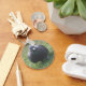 This keychain features a photograph of a wild Pigeon taken in my back garden. The bird was pecking about in the grass looking for seed that had been knocked off a bird feeder. The iridescence of the feathers is clearly visible in the photo.