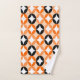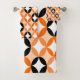 This towel set has a mid-century modern design of connected circles with a retro star in the middle. The star in each circle is the same shape as the space between the circles, forming an optical illusion.