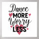 Spread joy and movement with this "Dance More Worry Less" graphic. Featuring playful typography accented with cute pink hearts, this design is a wonderful reminder to let go of stress and enjoy the rhythm of life. Perfect for dancers, music lovers, or anyone needing a positive boost.