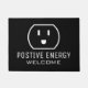 Positive Energy funny wall plug socket welcome Doormat. Custom door mat with smiling electrical outlet. Personalise with custom text and colours..