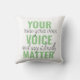 Positive Green Your Voice Matter Motivation Quote Cushion