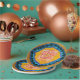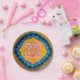 Yellow, pink , orange, blue,green,golden hand painted, naive, simple mandala.