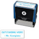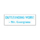 This motivating rubber stamp design features the motivational message "OUTSTANDING WORK!" and a custom educator name. It could be used by a teacher, educator, or tutor when grading student work, to acknowledge that a student has done an exceptional job.