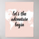 Positive Pink Let's The Adventure Begin World Map Poster