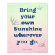 With this Poster that encourages you to "Bring your own Sunshine wherever you go", designed to inspire and motivate you daily. Personalise it with your name for a unique touch, creating a positive and uplifting vibe.