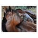This gorgeous bay filly by Bernardini, out of "Fashion Storm", is happy to have company the morning of her first race at Saratoga. Laying down in her stall, Positively Royal looks very happy on the backstretch of Horse Haven - Saratoga. Fleetphoto