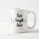 Start your day with positivity using this elegant white mug featuring the inspirational phrase “Live Laugh Love” accented by a heartbeat line design. Its minimalist black typography on a clean white background makes it perfect for coffee, tea, or as a thoughtful gift. A stylish reminder to enjoy life, cherish laughter, and embrace love every day. Ideal for home, office, or as a meaningful present for friends and family.