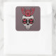 Vector cartoon illustration of a demon rising from a skull with heavy metal devil horn hand gestures.