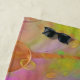 The fabric is soft and fluffy, feels great on the skin. The quality seems to be very good, I have not yet tested how absorbent the fabric is. The colors were vivid, the lines of the design clear, all in all, a great result.