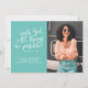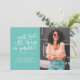 A modern Christian graduation announcement card, featuring the Bible verse Matthew 19:26 "With God all things are possible" in white modern script font, on a teal background that can be edited by clicking 'customise further', next to a photo of the graduate. Personalise with graduation details in white sans serif font.