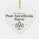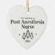 First Christmas as a post anaesthesia nurse heart ornament for a new job in nursing. Elegant porcelain ceramic holiday ornaments in white with black lettering. Featuring Christmas trees and stars.