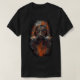 Make a statement with this dark and gritty t-shirt featuring a highly detailed illustration of a hooded gas mask. Bold pops of vibrant orange and red create an intense contrast against the distressed background. Perfect for fans of industrial, apocalyptic, and alternative streetwear, this tee brings a powerful dystopian edge to your everyday style.