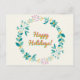 Warm wishes postcard for holidays and Christmas. Wreath holiday postcard.