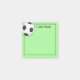 Post-it-Notes shown in a light green colour with a sports soccer ball print.