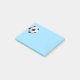 Post-it-Notes shown in a sky blue colour with a sports soccer ball print.