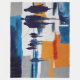 Loose, confident brushstrokes and geometric colour fields give the piece a modern, painterly structure. The figures appear anonymous and universal, emphasising shared experience rather than individuality. There is a sense of transition in the scene—between weather and calm, movement and pause—making the artwork emotionally resonant and quietly powerful.