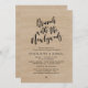 Planning a brunch celebration with the newlyweds the day after the wedding? Invite your beloved guests with this "Brunch with the newlyweds", in modern rustic script design (black and white, cottage brown wood background) themed, indicating the date, time, venue, hosted by, and RSVP details.