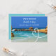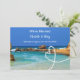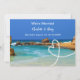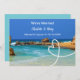 Ideal invitation for couple getting married in Cyprus who want to celebrate their wedding with friends and family back home on their return. Lovely scenic photo of Cyprus with blue sea, sky, rocks and beach with pretty white beads in the shape of a heart and sweet gold love hearts.