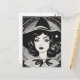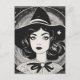 This captivating vintage-style black and white illustration features a mystical witch in a classic retro design. With her piercing gaze, flowing hair, and signature pointed hat adorned with a star, this witch embodies a blend of old-world charm and gothic elegance. The celestial backdrop, complete with a swirling moon and twinkling stars, adds an enchanting atmosphere to this magical portrait. Perfect for fans of witchcraft, gothic aesthetics, and vintage occult art, this design exudes witchy vibes with a timeless appeal. Ideal for apparel, home décor, and accessories, this artwork brings a touch of magic to any setting.