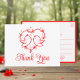 This charming lovebirds postcard is a delightful way to express your gratitude. The delicate red heart illustration, along with the simple red and white colour palette, creates a soft and romantic appearance that is perfect for outdoor summer weddings or spring garden celebrations. Ideal for nature lovers, this design combines boho elements with adorable bird artwork. It’s a lovely way to send your thanks with a touch of extra love. This card can also be personalised for various events.