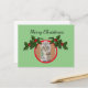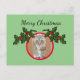 Cat in red circle frame, decked with holly branches. Image sits below the text "Merry Christmas" on light green background. Personalise with your photo.
