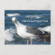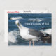 This whimsical bird craning his neck to get a look at you is a Western Gull, or Larus occidentalis. His (or maybe hers; all mature adults have the same colouring) gorgeous white head and breast contrast with the bright blue waves and white surf crashing ashore at Monterrey, CA. He has a grey back, black wing-tips with small white stripes, a yellow bill and pink legs. Against the blue water is the white lettering, "Here's Looking at You." I took this photo in the winter of 2007. Copyright Gail Storrs 2007.